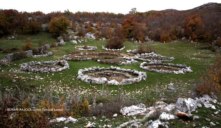 A group of several wells. The wells are built from irregular slate stones without any cohesive material in a so-called drywall technique where they were laid in the ground and the height was that of one row of stones. The opening of the well is of a rectangular shape.